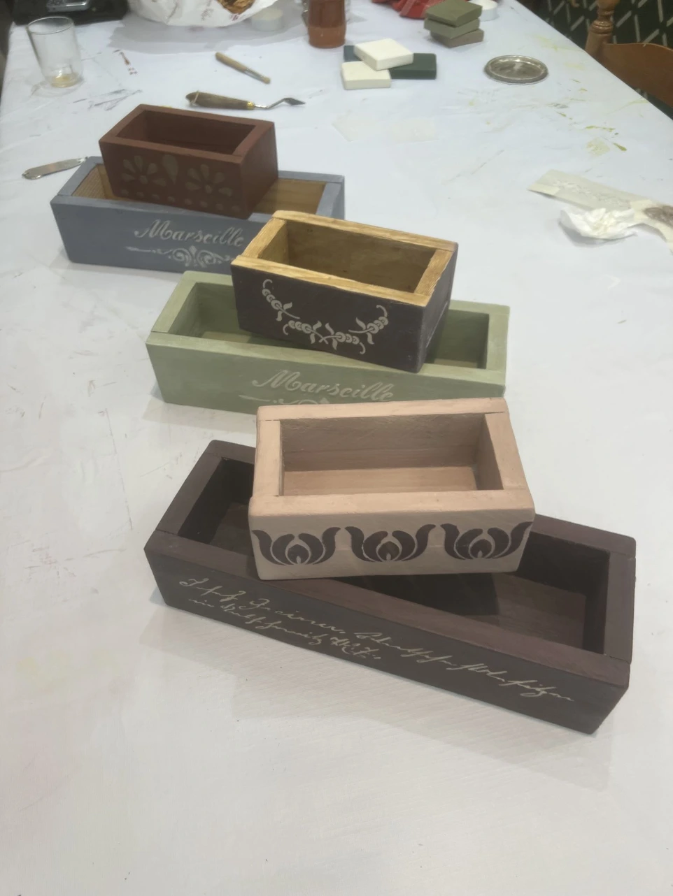 En una sessió de dues hores i mitja, podràs fer un objecte com més t'agradi. El pintaràs, aplicaràs massilla i pintura sobre el Stencil i faràs l'acabat per poder emportar-te'l a casa.